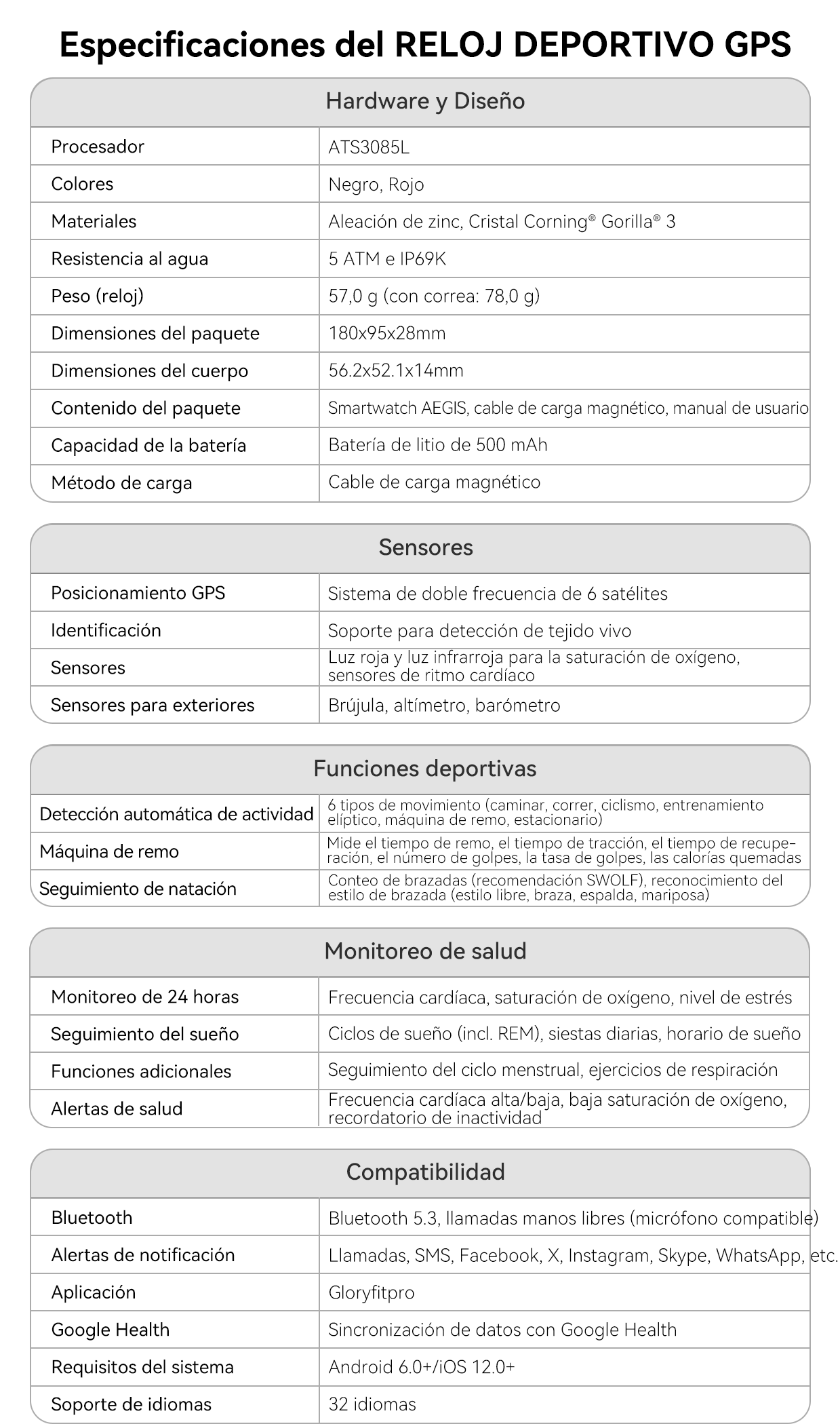 - Comprehensive Sports & Health Monitoring- Sensores multifuncionales que rastrean con precisión más de 170 deportes y datos de salud.